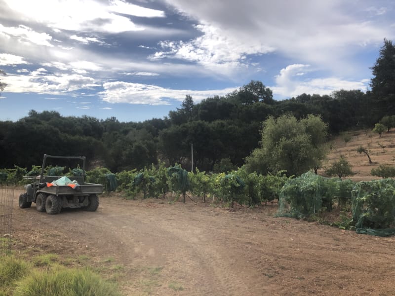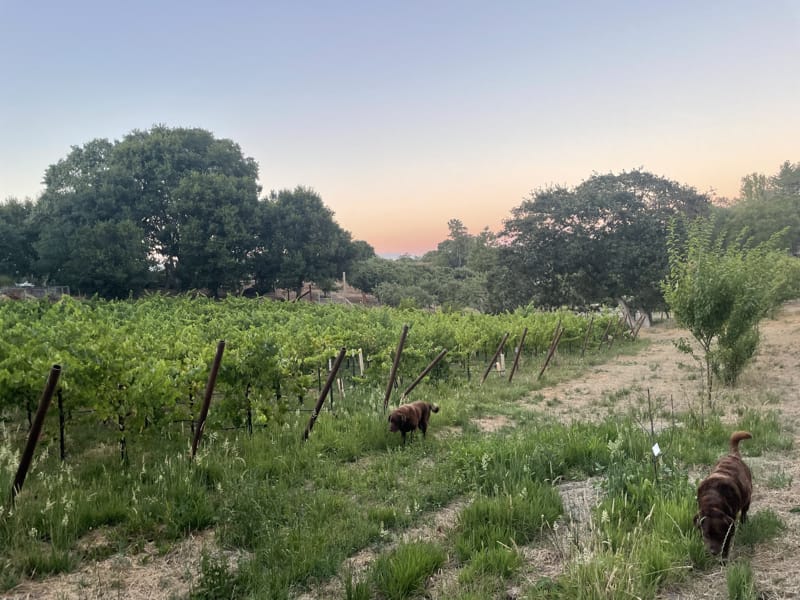 Gophers, bees, insects and birds thrive here and often eat much of the crop including one vintage when they ate the entire crop. We have farmed this vineyard organically and used house made compost since the vineyard was planted.